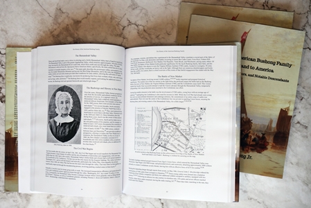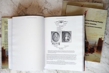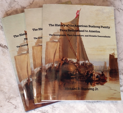 Order direct from the Amazon.com or Lulu.com, usually taking 3 to 5 days plus shipping time per order. The book has 338 pages and is available on two qualities of paper - regular 60 lb and premium 80 lb paper. With over 300 illustrations, table of contents, and index, it has chapters tracing virtually all American Bushongs' ancestors, plus chapters on uncles, aunts, and cousins, as well as voyaging to America, the surname's origination and finally how they are all related. Price ranges from $30-$50 plus a special edition printed in full color.