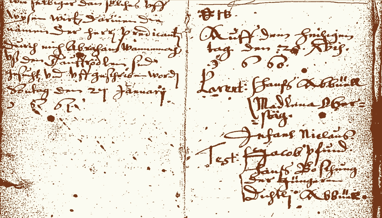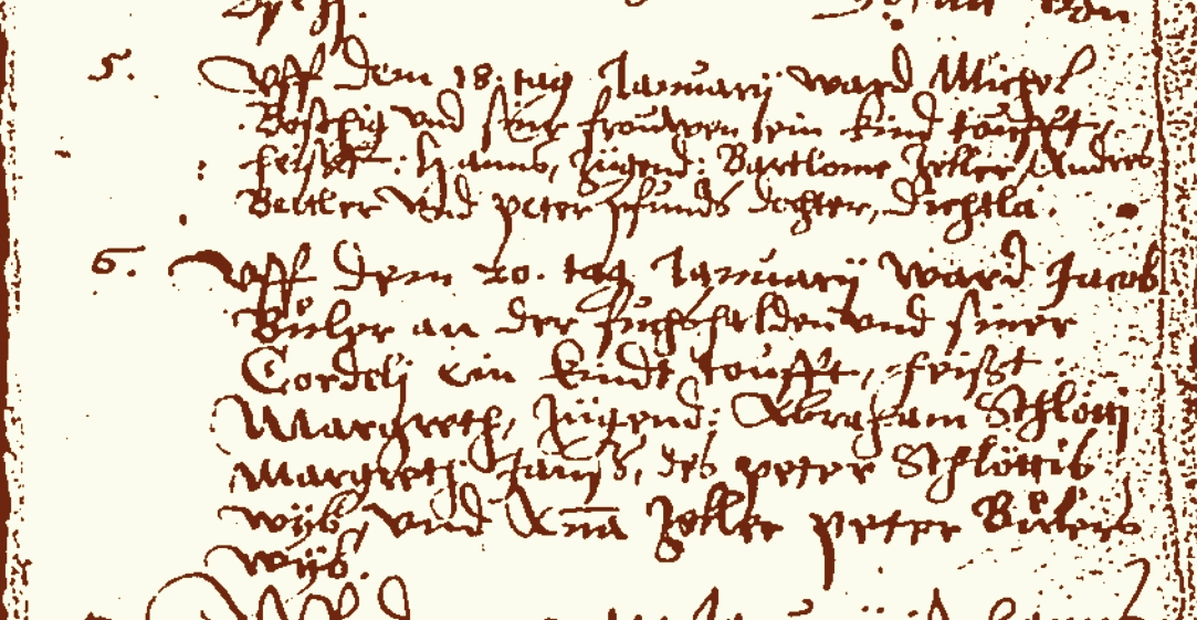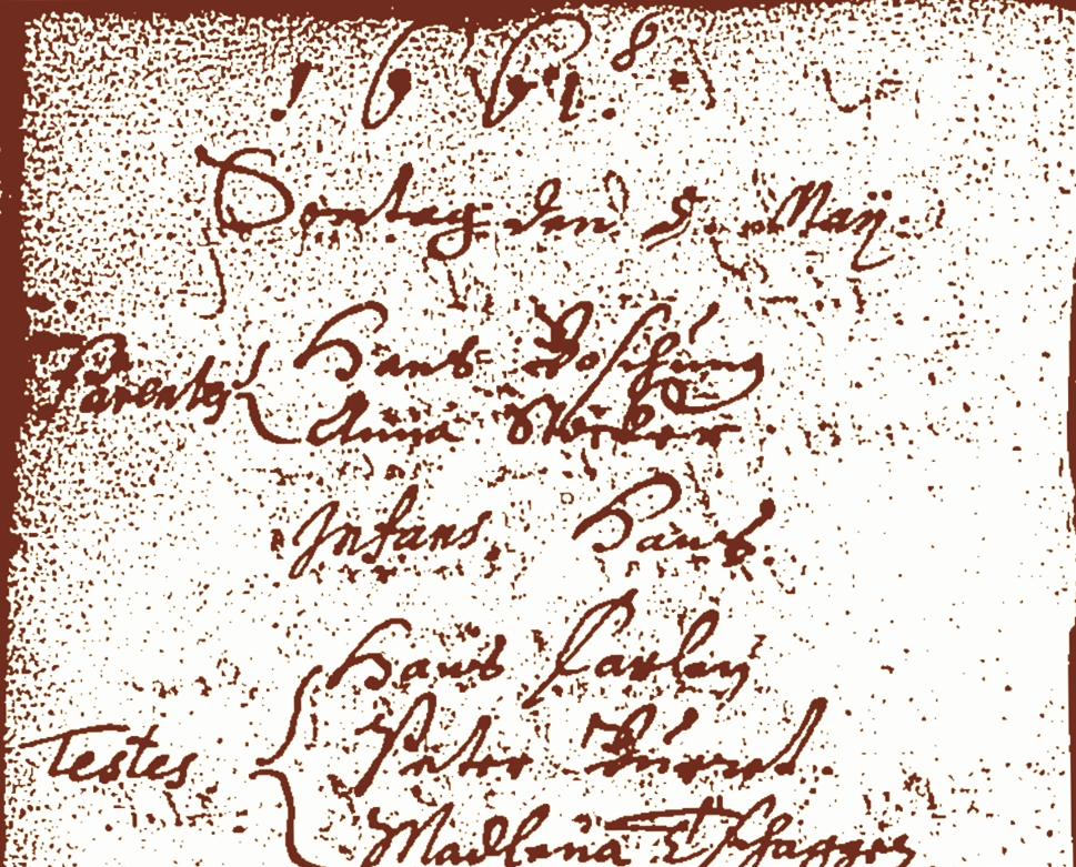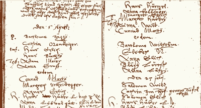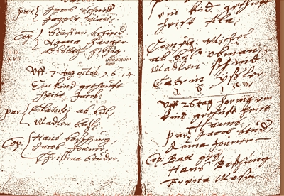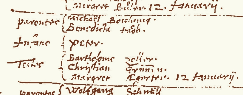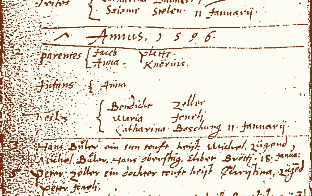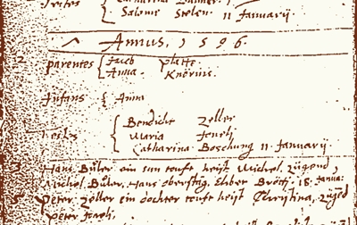 1594 Bartolme Jaggi baptizes a son in Boltigen. | |