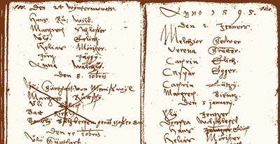 1605 Hans Boschung witness baptism at Oberwil. | |