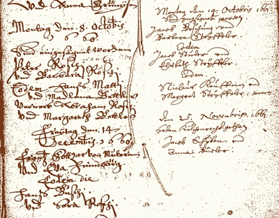 1660 Hans Boschung a witness at Oberwil. | |  1660-1661 Hans Buschi marries 1660 and