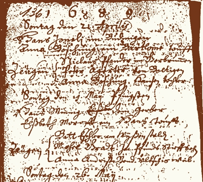 Jacob Boschung marries 1661 at Oberwil. |