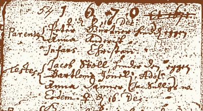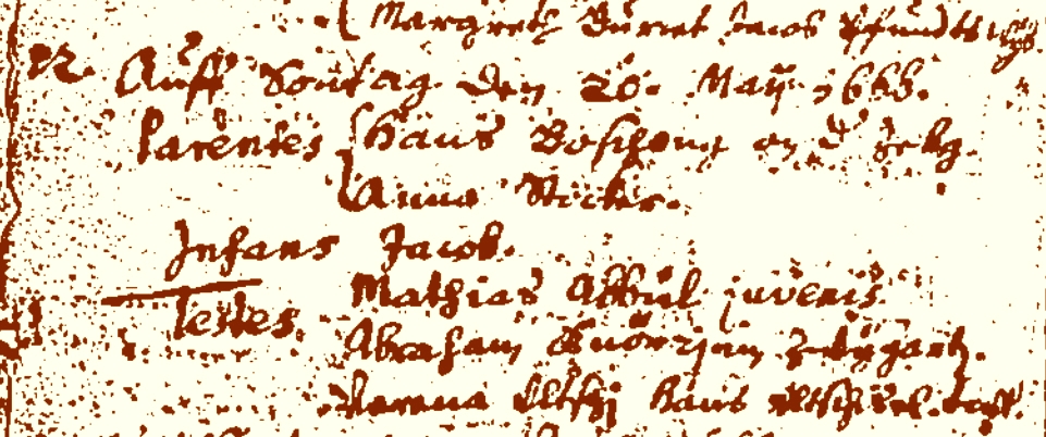 1692 Peter Boschung baptizes Jacob at Oberwil. | |