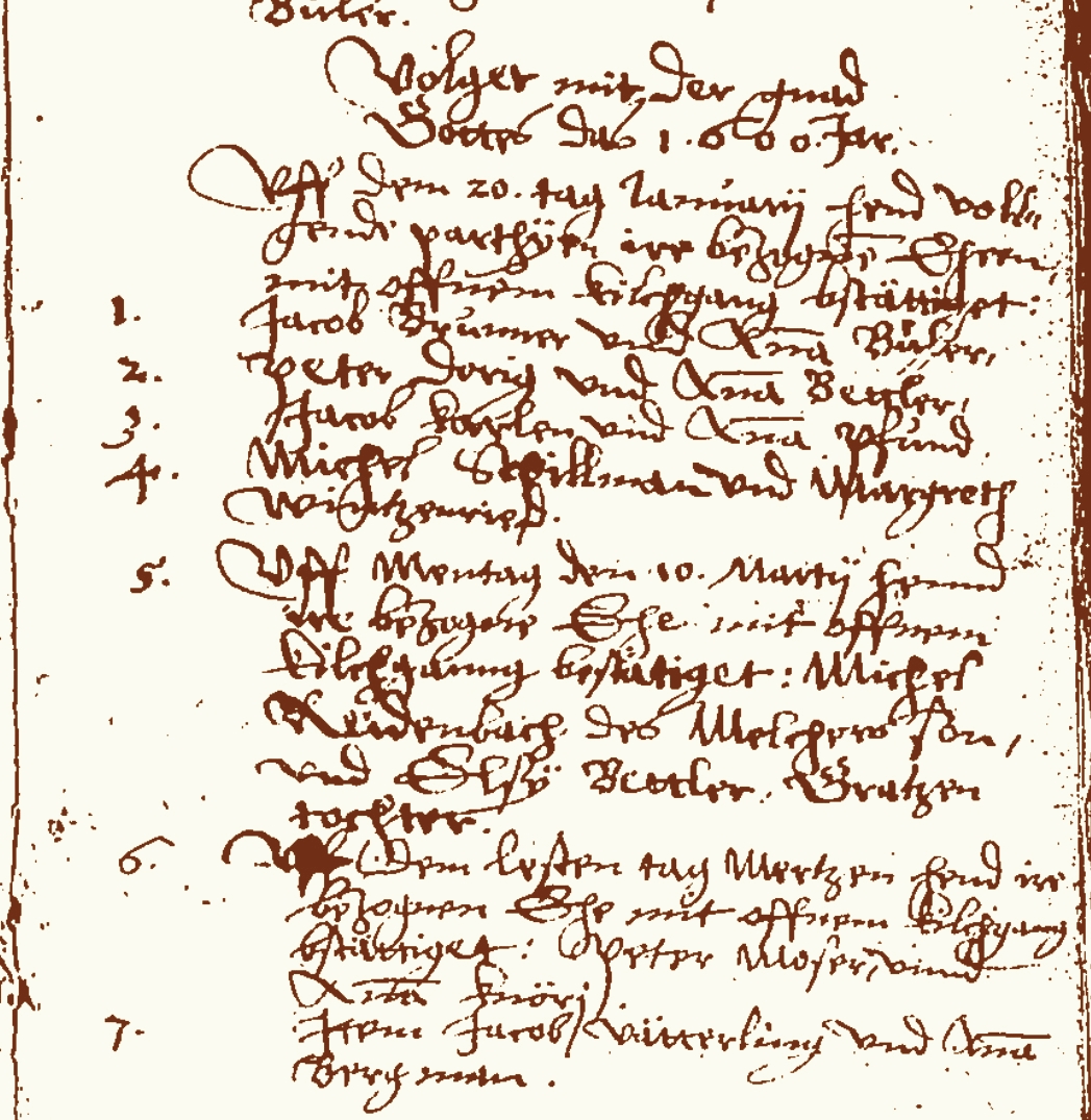 1600 Marriages in Boltigen church book. |