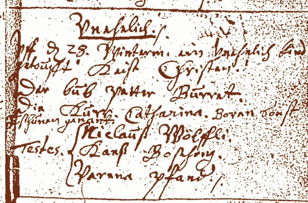 1663 Peter Boschung baptism in Oberwil. |