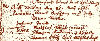 1666 Jacob Boschung baptized at Oberwil. |