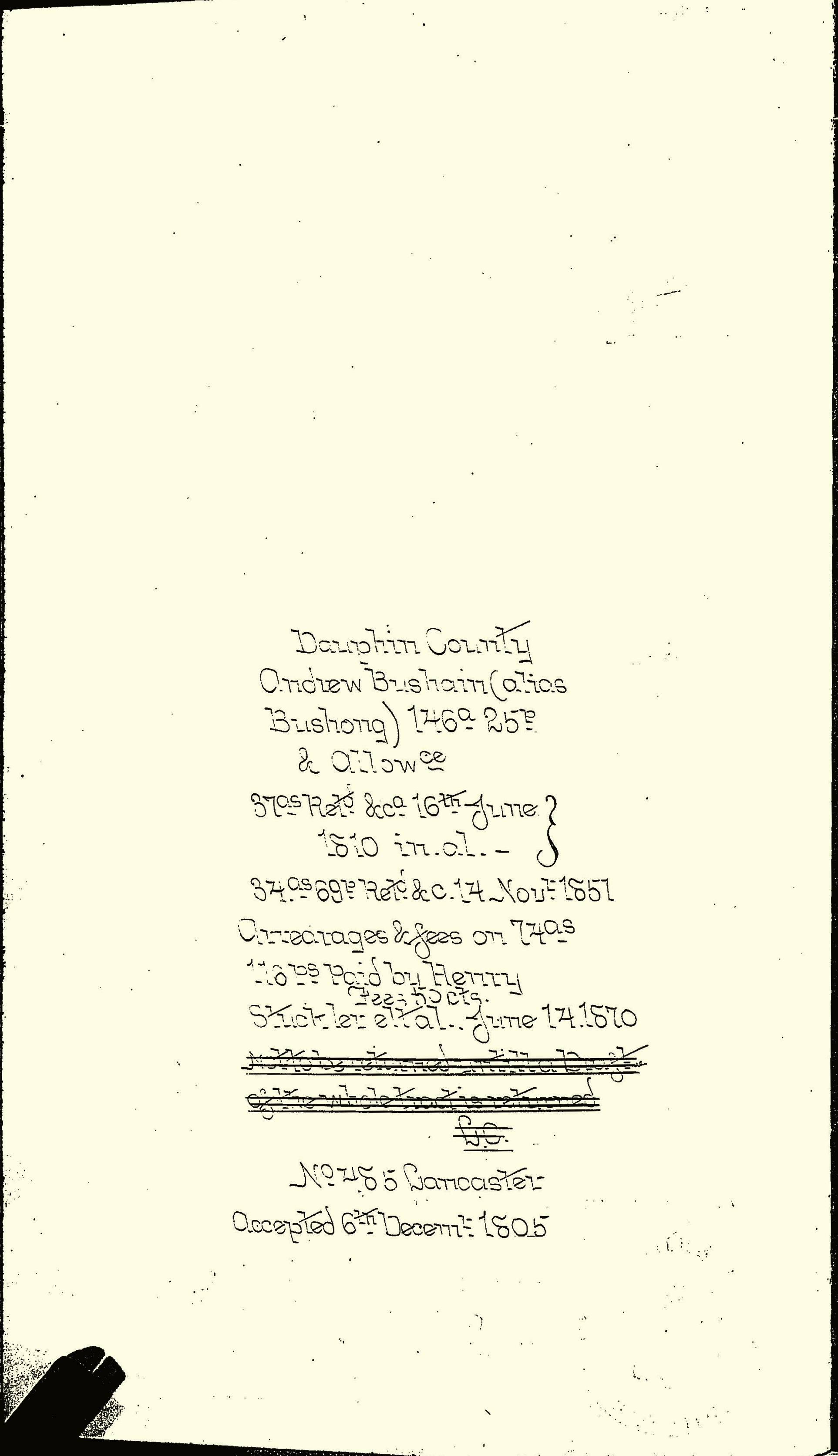 Andrew Bushain alias Bushong 146 acres, Derry Twp. cover. |