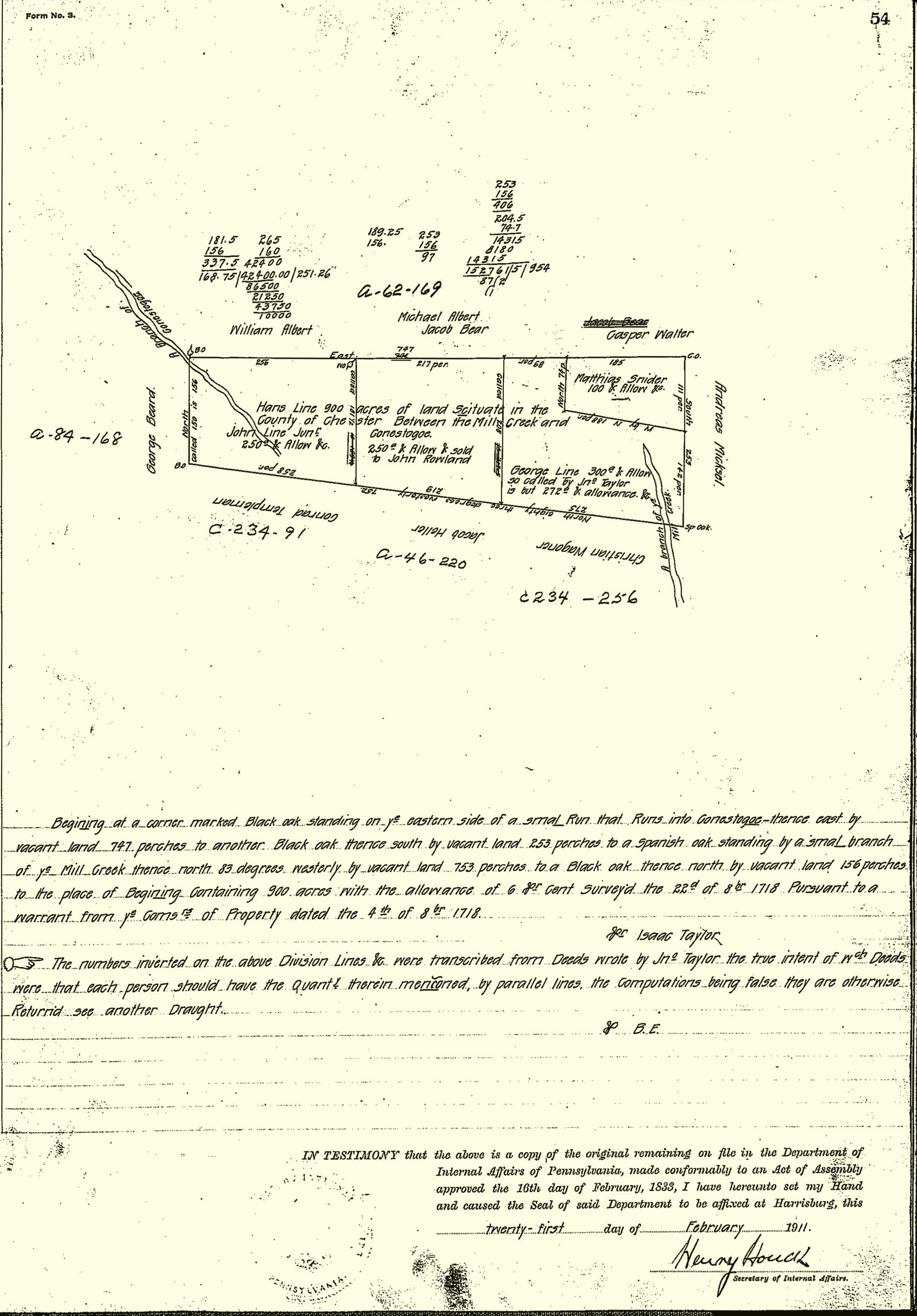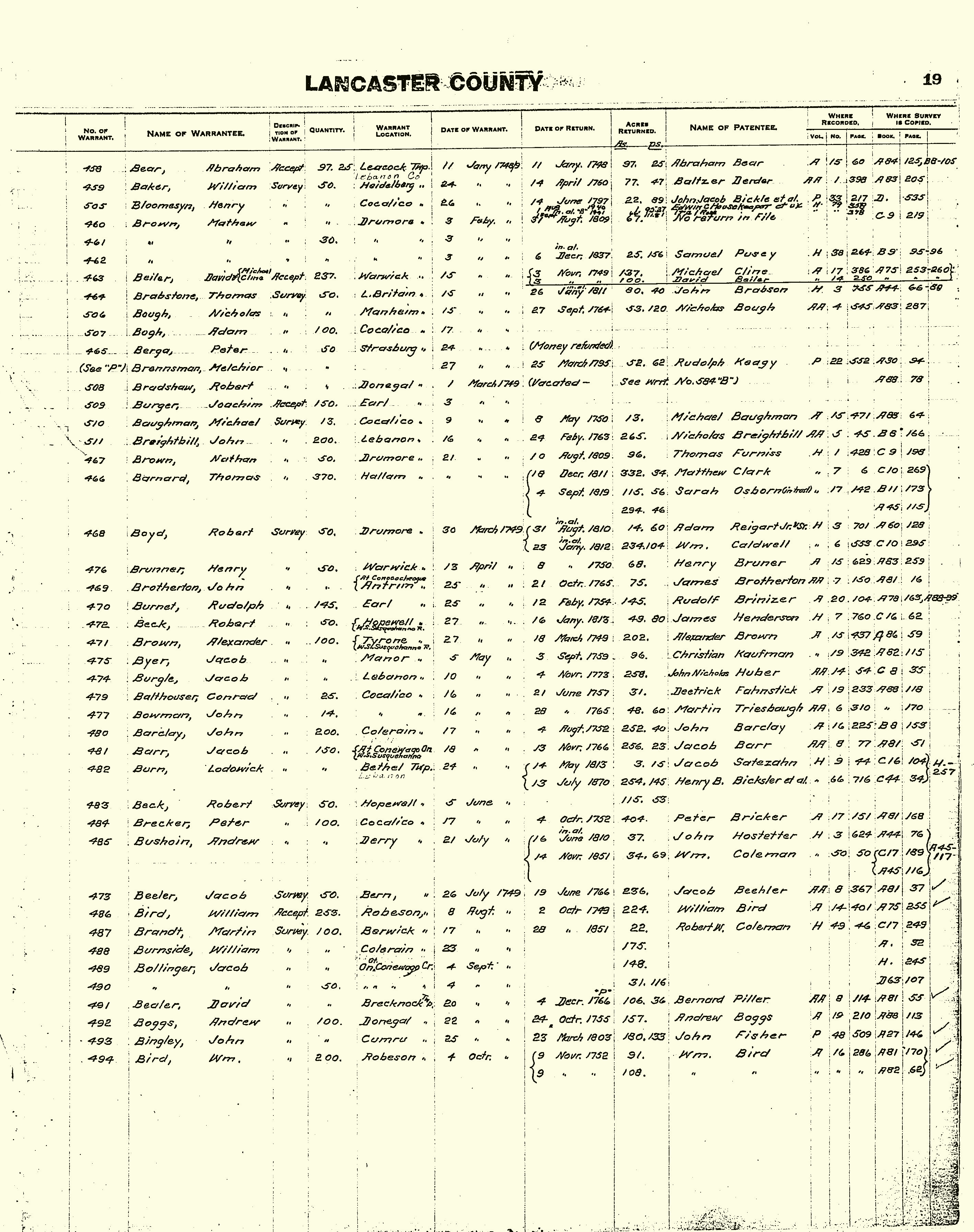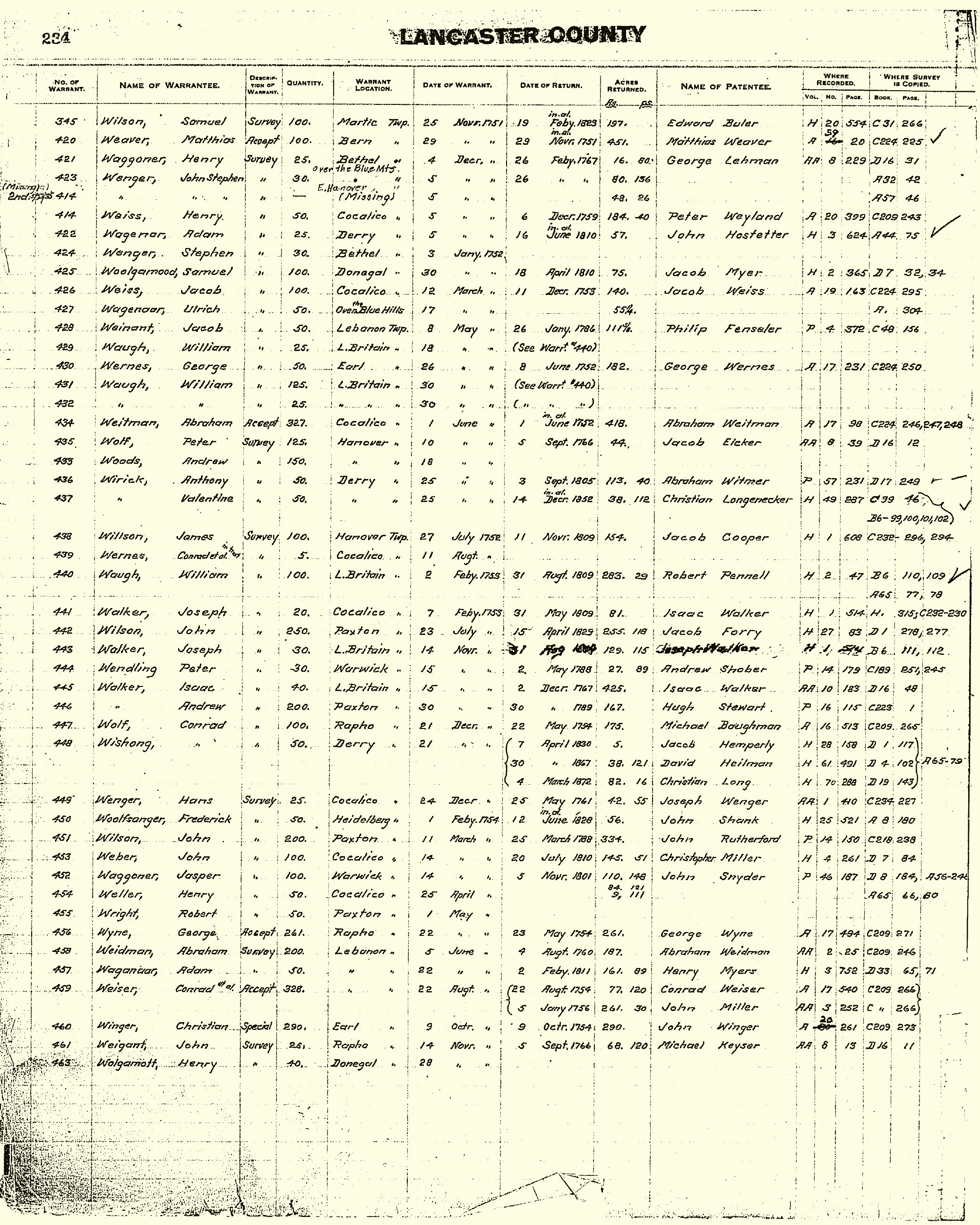 Conestoga Twp., Pennsylvania, connected land warrants map.