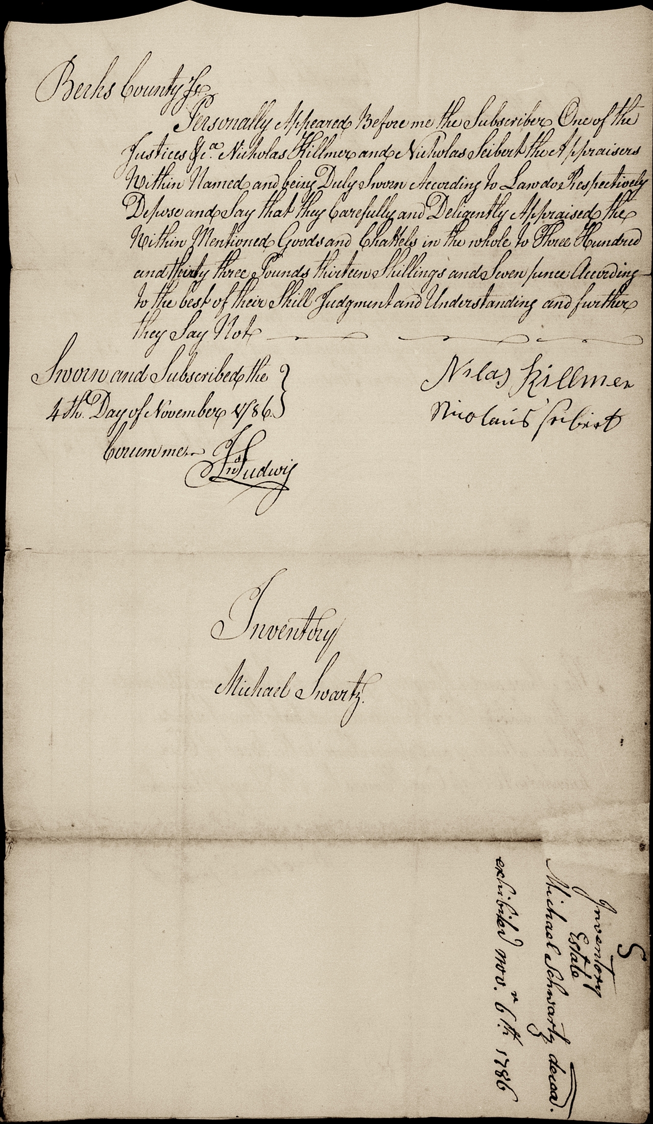 Nov 4 1786 appraisal cert.