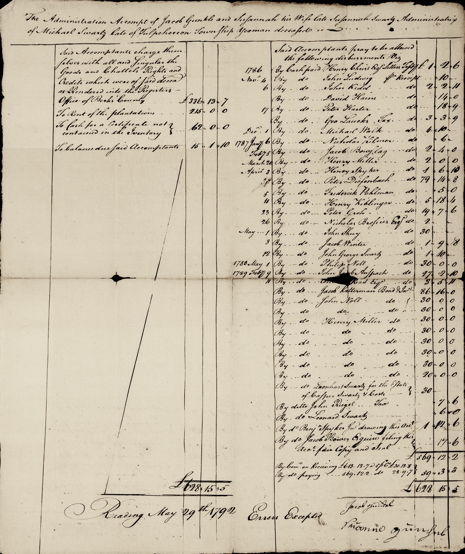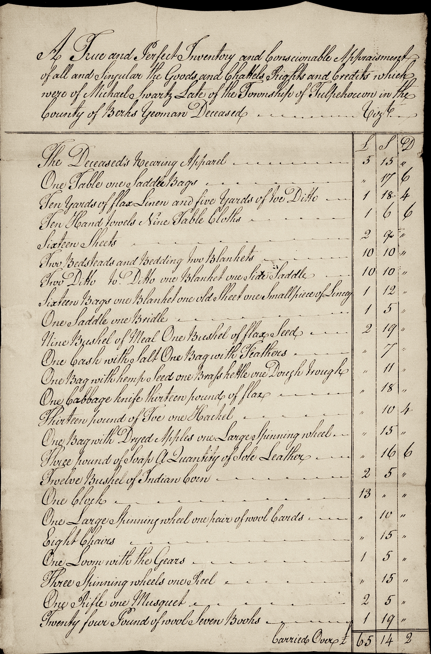 Extracted from Michael Schwartz's 1786 estate papers