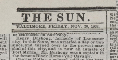 "Henry Bushong, formerly of Lancaster city, in this State, was arrested a day or two since,