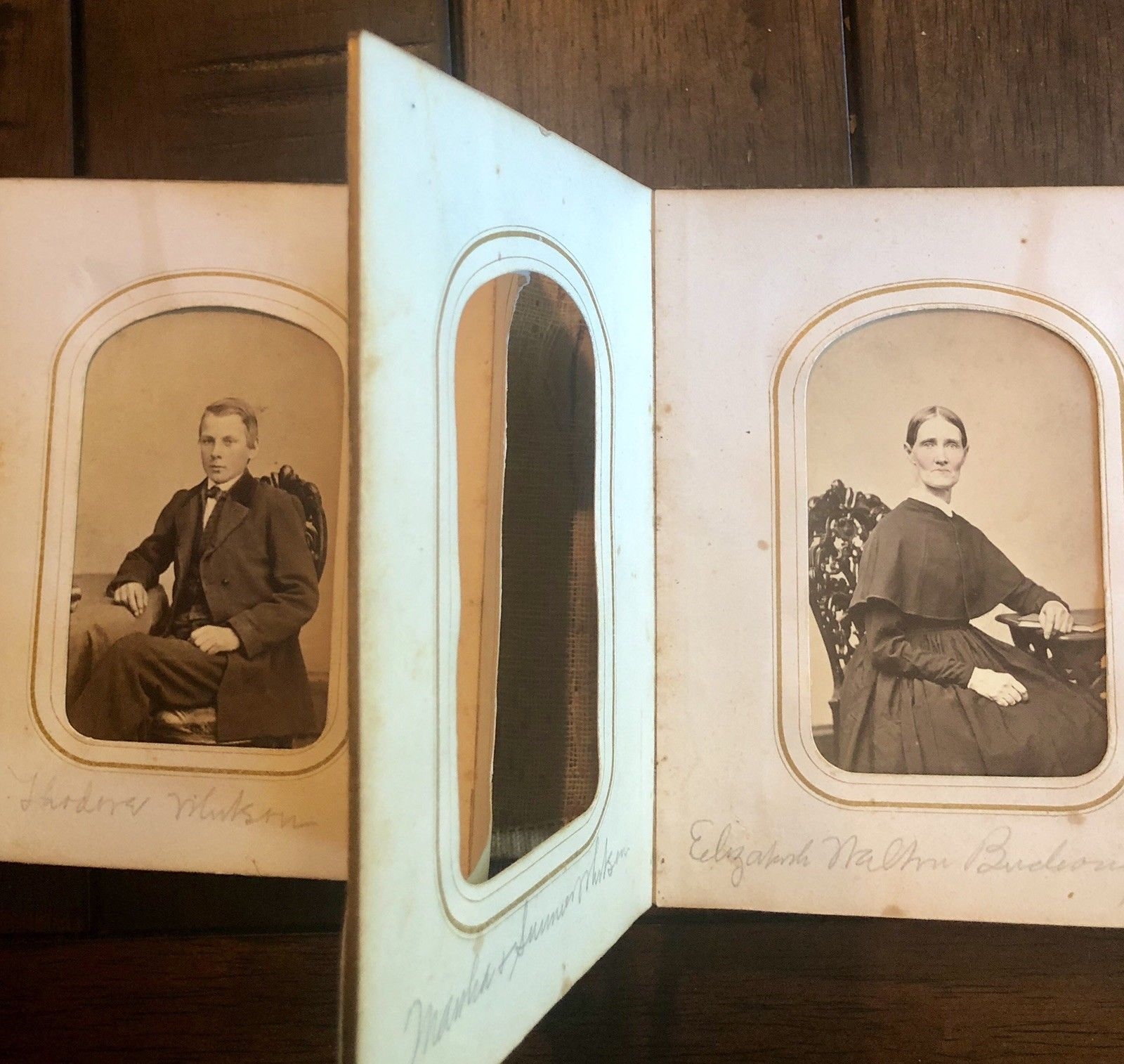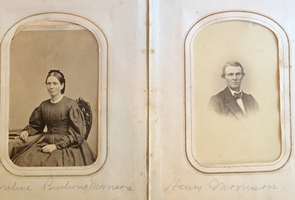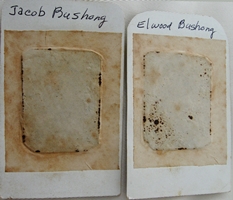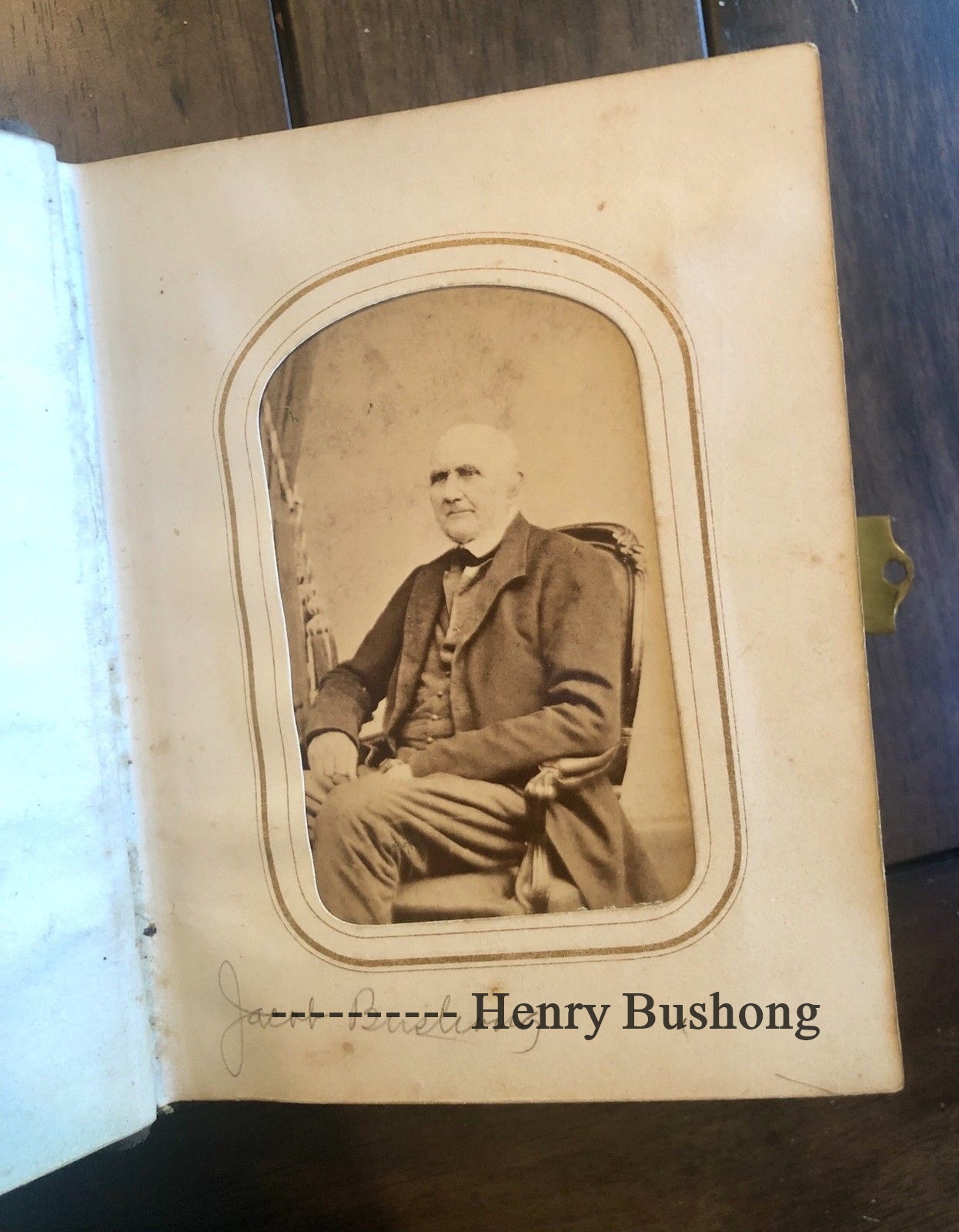 In addition, there are photos of sibling John's first wife, Elizabeth Walton, plus another sibling, Caroline Bushong Morrison, and her son Henry Morrison. So in all, there are two children of Henry Bushong, and one of his children's spouses that have newly identified photographs. However there is one discrepancy in the album, a photo identified as Jacob Bushong, is really his father, Henry. Both Jacob and his father's photographs have been well identified.