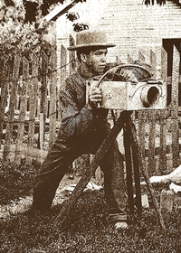 Clarence Rothrock, Mary's son, before his death in 1899. Clarence is using a unique large format "view camera," that possibly used five-by-seven inch sheet film.