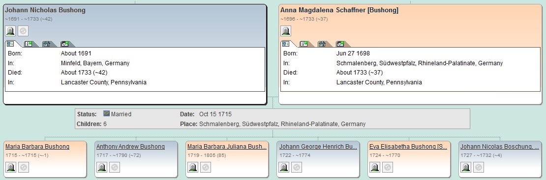 Children of Johann Nicholas Bushong and Anna Magdalena Schaffner 1; 2; 7; 10