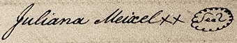 BE IT REMEMBERED. THAT on the 13th day of February, Anno Domini 1805, The last Will and Testament of Juliana Meixel, deceased, was proved in due form of law and Letters of Administration, with the Will annexed, were granted to Juliana Meixel. Peter Eby, the Executor in the said Will named, having renounced, she having first given security, well and truly to administer the Estate of the said deceased, especially to exhibit a true and perfect Inventory thereof, into the Registers Office at Lancaster, within one month, from this date, and to render a true and just account of her administration on said Estate in one year.