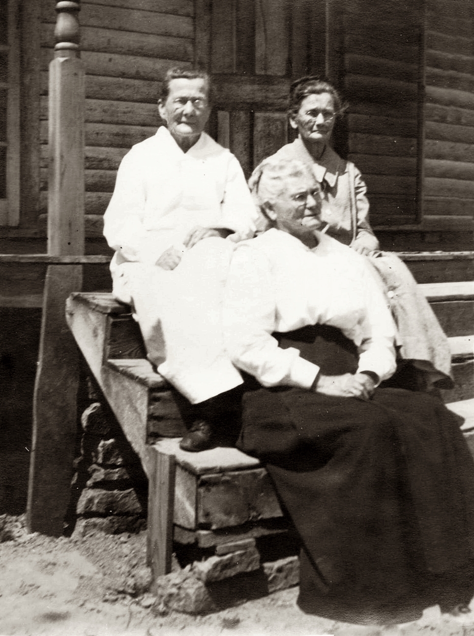 Photo on left, Eliza with her sister, Lena and baby not named. Photo on the right Eliza with two sisters.