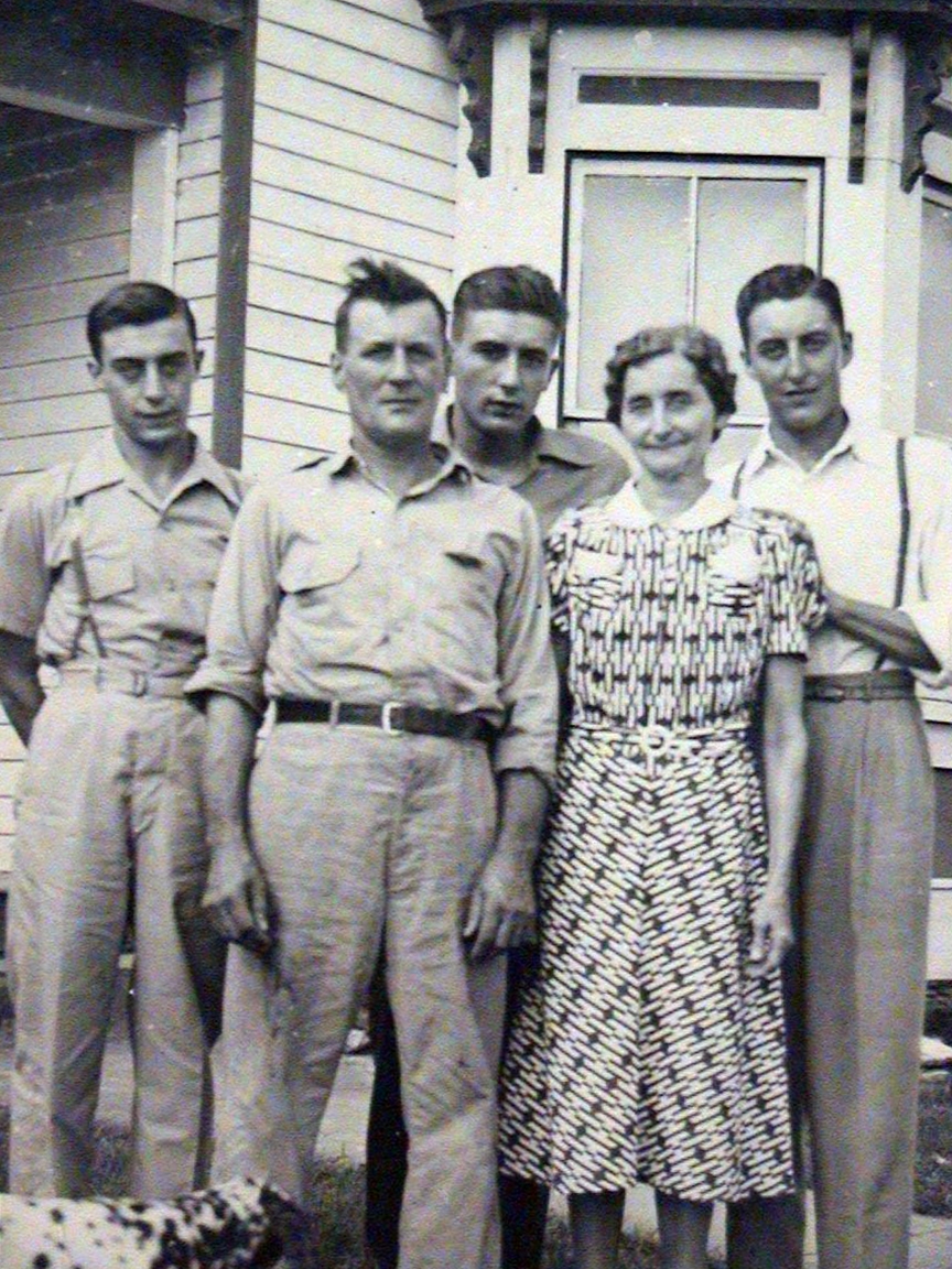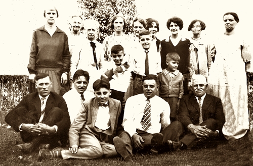 Family of William Arthur Bushong, including his daughter Naomi, his sons Levi, John, and Emery, and grandsons Lee, Gilbert, Forest and Garland.