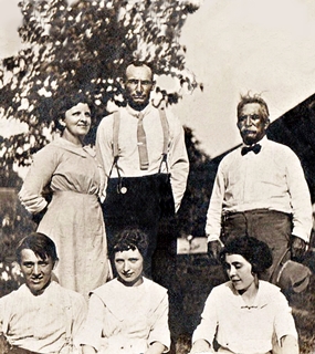 Frederik with son, George Arthur and his third wife, Bertha McAlister Bushong. Seated on the ground, probably some of Bertha's children by first husband, Charles L. Fredricks, otherwise, not known. Right photo Fredrick cropped from photo on the left.
