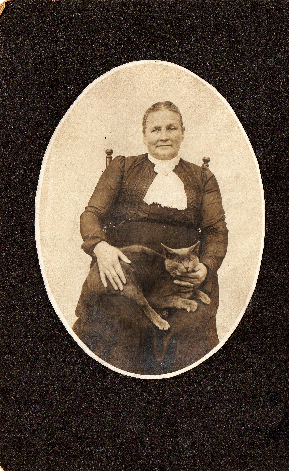 Left: Alice with a cat, on the right: the Fredrick M. Bushong family Bible.