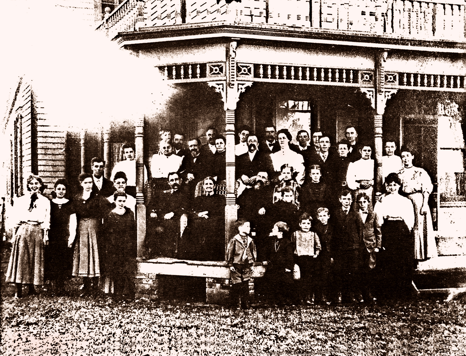 A Zirkel family photo, front left is Helena Bushong Zirkle, back row, second from left is William Harvey Zirkle, others not noted.