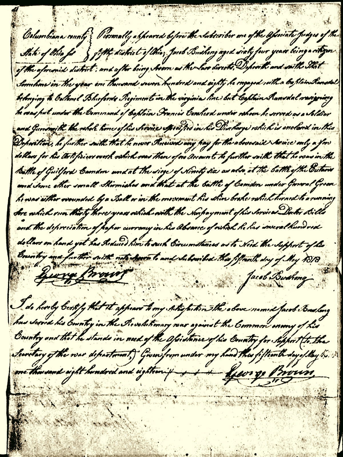 Veteran: American Revolutionary War - 2nd Virginia Regiment, from Bedford County, Virginia.