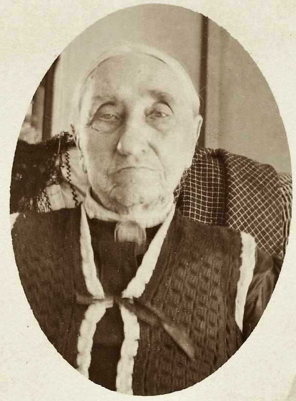 Four generations. From left to right, seated, Hannah Alsbach Bushong, her great granddaughters, (on her lap), Maurice Smith, and standing beside is Ellora Smith. Standing back row, Amos B. Fox, Eva Anna Bushong Fox, their daughter, Mabel Fox Smith, son in law, Samuel Smith. Taken 1908-1909.