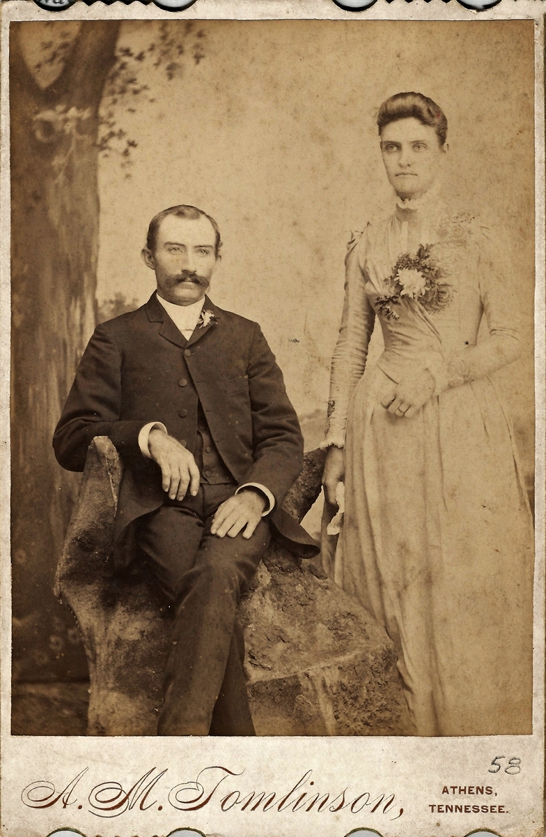 Abbie with her cousin, Joseph Grafton Bushong. Next, Josie and Lillian Janeway visiting Annie, mother and grandmother, near Sweetwater, Tennessee.