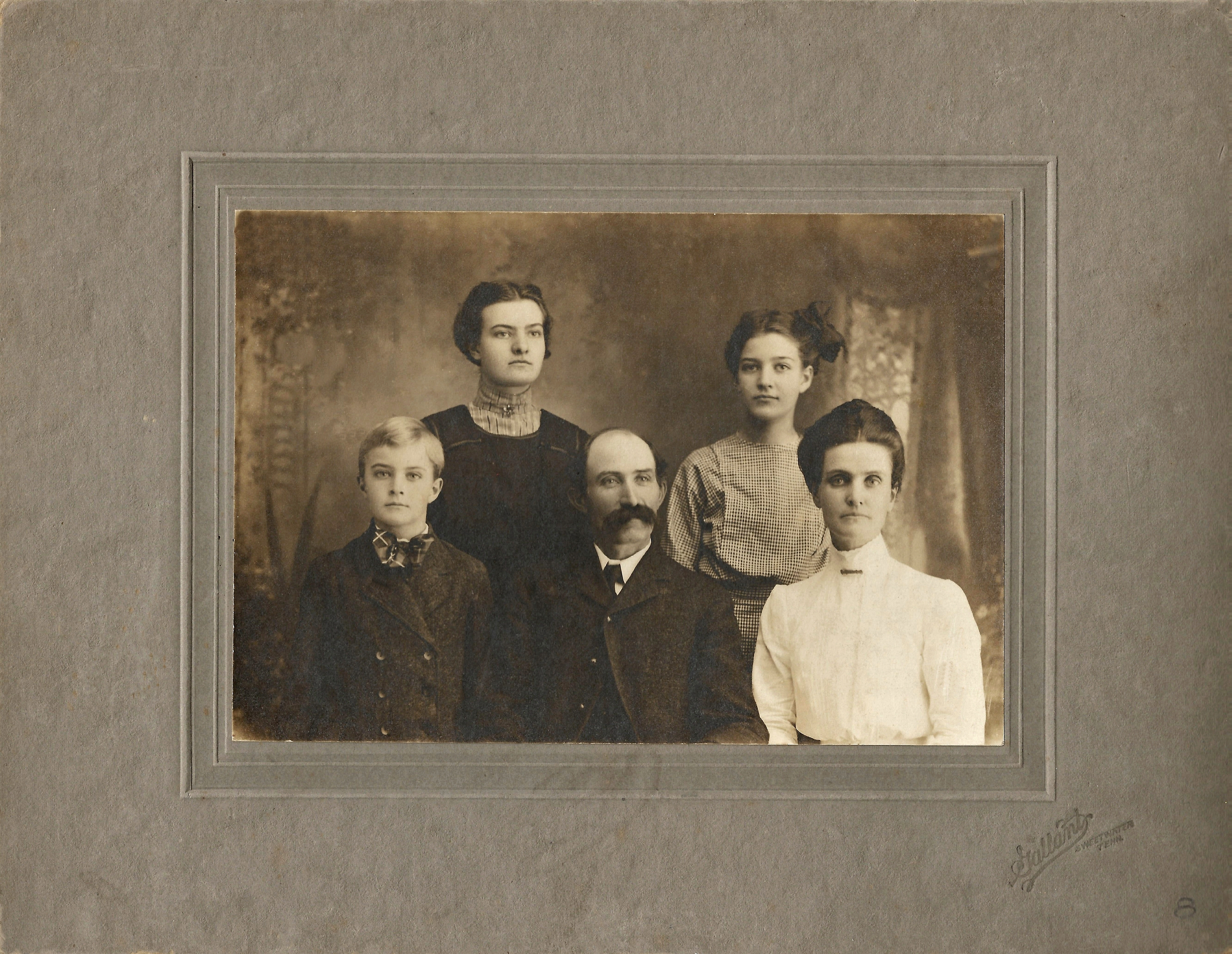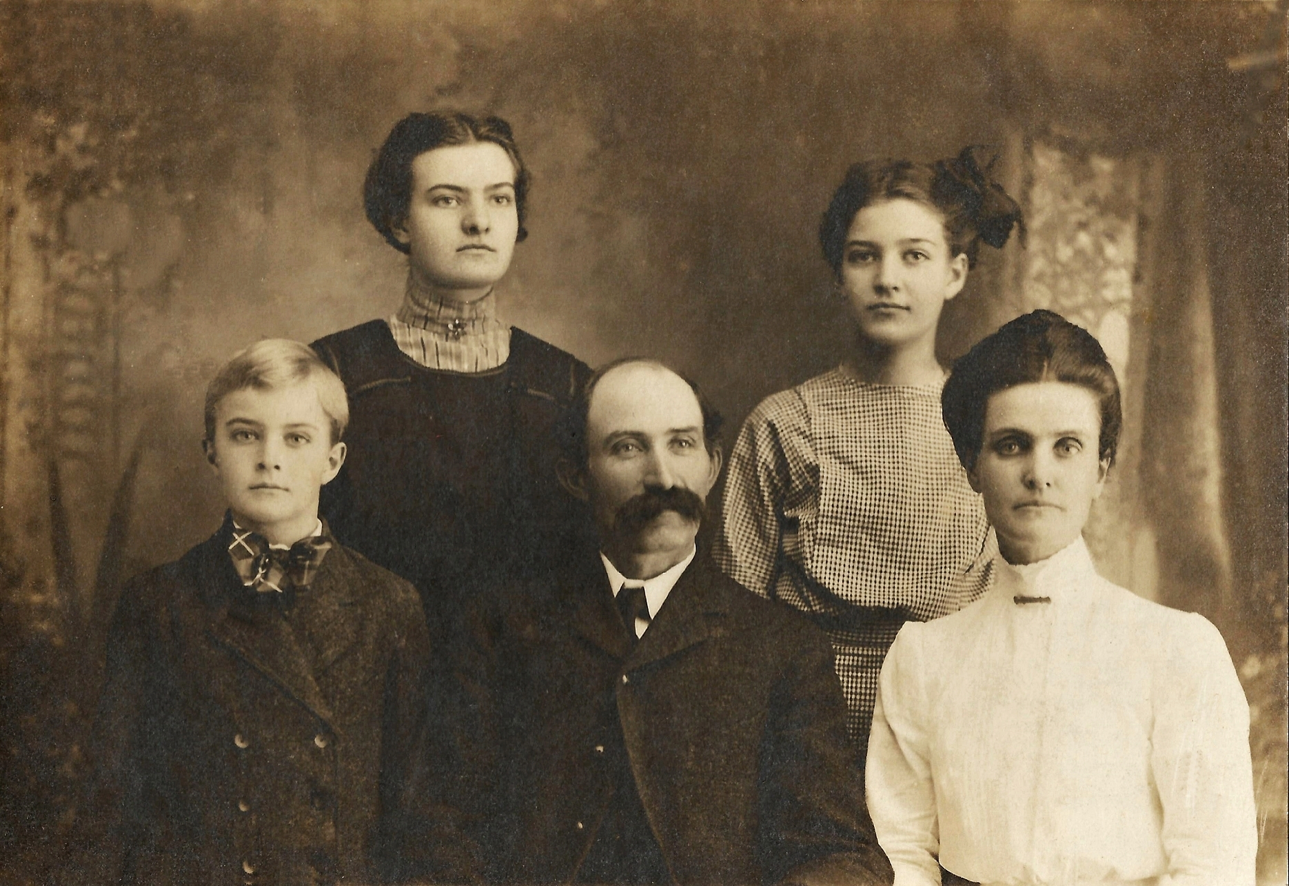 The Janeway family in Sweetwater, Tennessee. From left to right, front row, James Lynn Janeway, James P. Janeway, Josephine Bushong Janeway. In back, Lillian Janeway (Wheeler), and Abbie Loraine Janeway (Page).