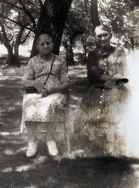 Seated on the left, Maggie, on the right, her niece, Rena Josephine Brann Fox, wife of Charles B, Fox.