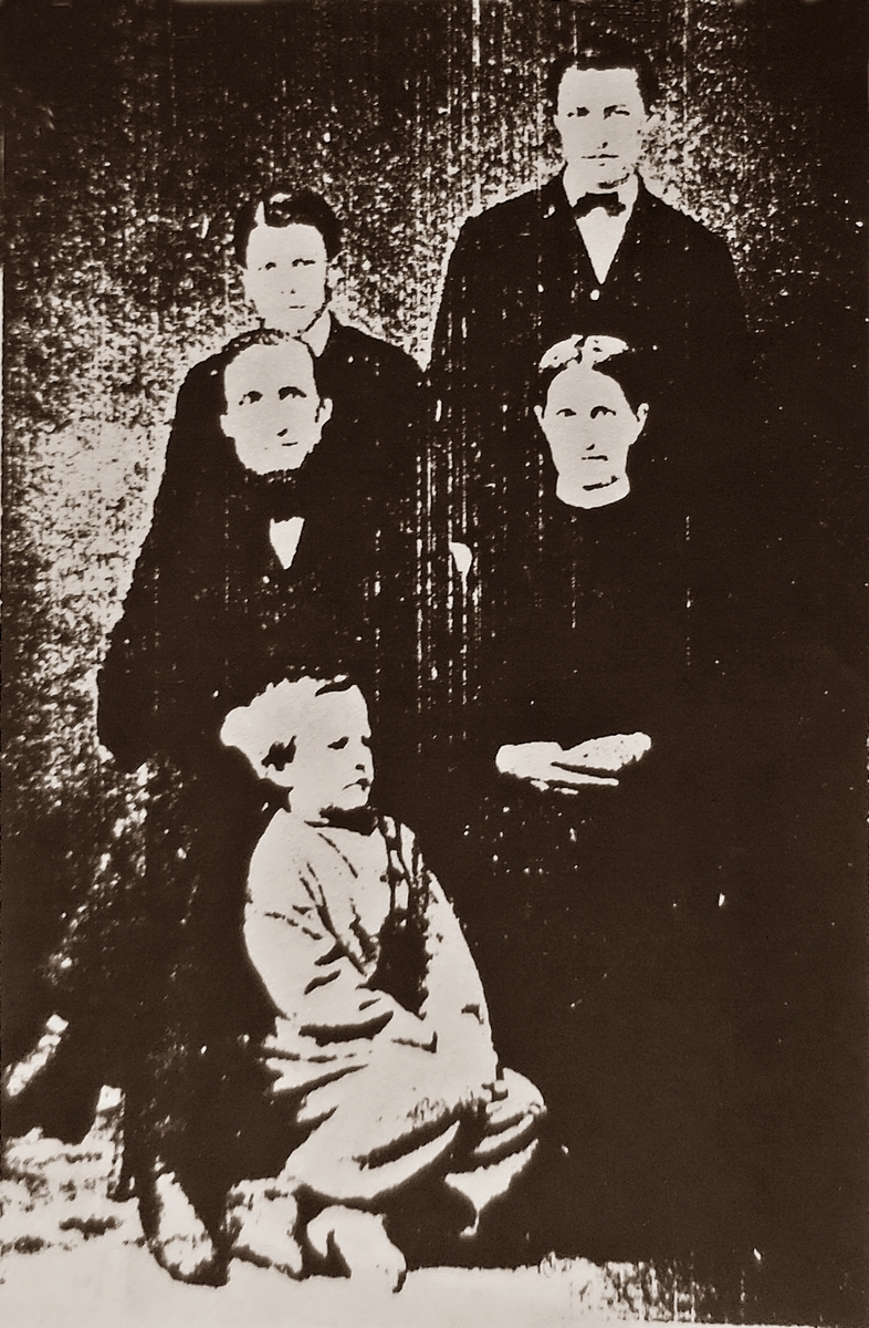 The John Deemer family. Left to right, seated John Deemer and Martha Bushong Deemer.