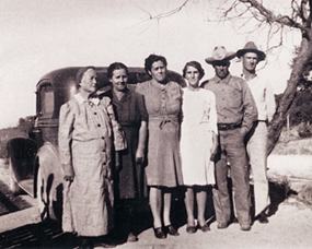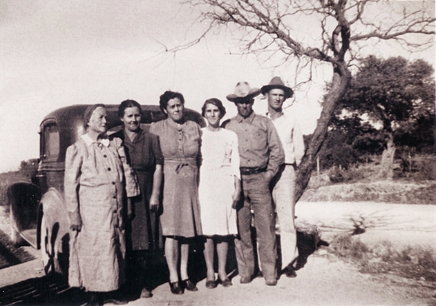 Front row, left to right: Charles Hensley, Donabele Bushong (McCormick), Ines Knight, Oscie Knight, Joe Hensley, George Hensley.