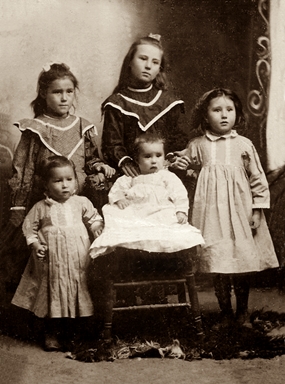 Mary's and Charles' children, taken around 1905, before their final child, George was born. From left to right, two oldest standing in back, Oma and older sister, Lillie. in front, Joseph, seated is Charley, and next is Mary.