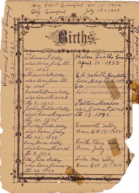 Bible records for marriage and births.
