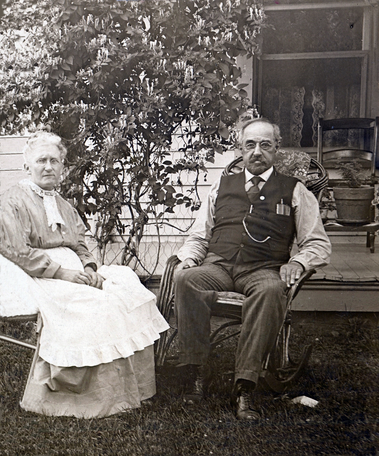 • Photo bottom right: Peter and Rozilla's son, Anderson Jackson Bushong and family. Sarah and Anderson in front. Franklin and Onelia in back. For photo with mat removed click here.