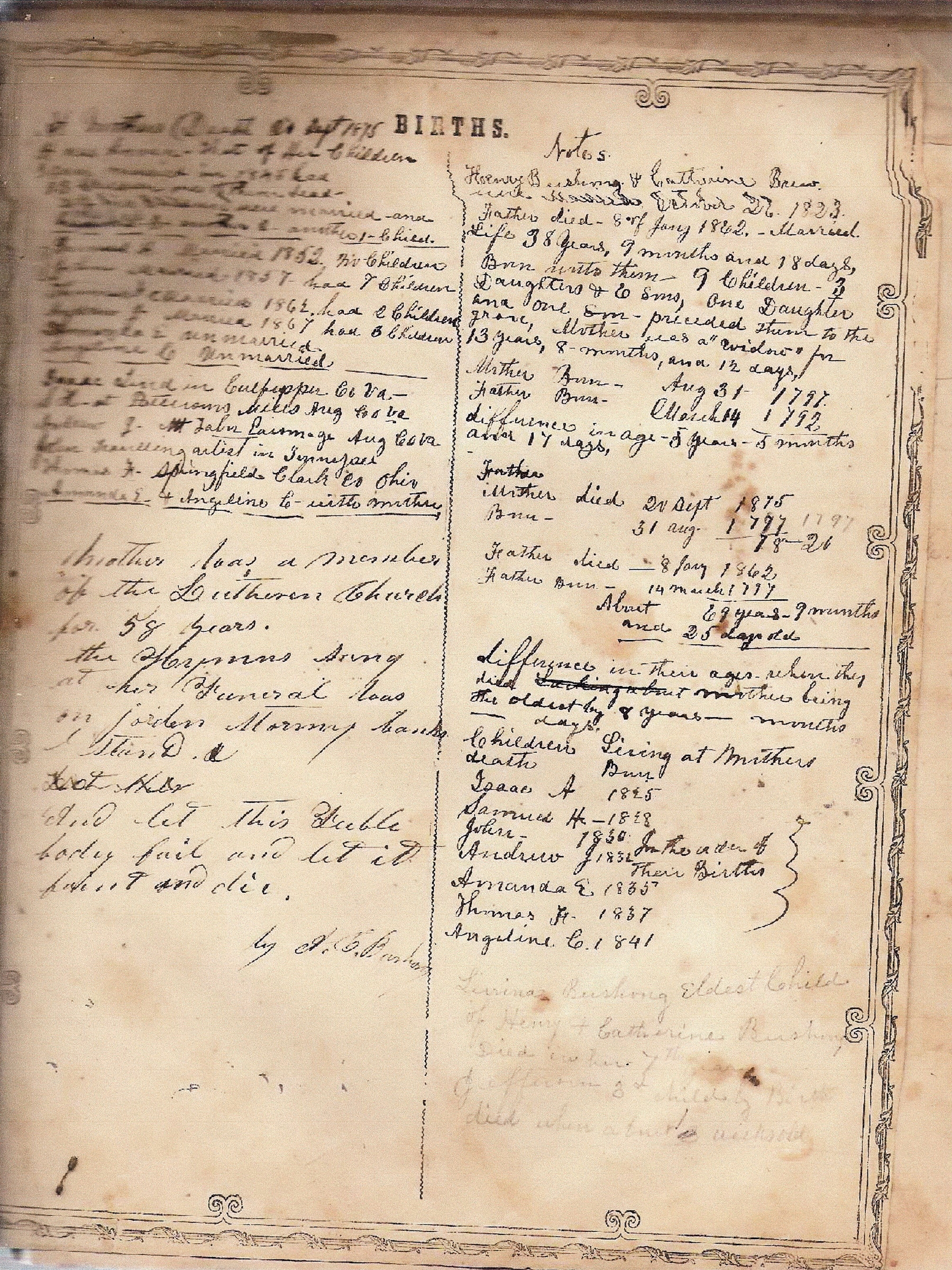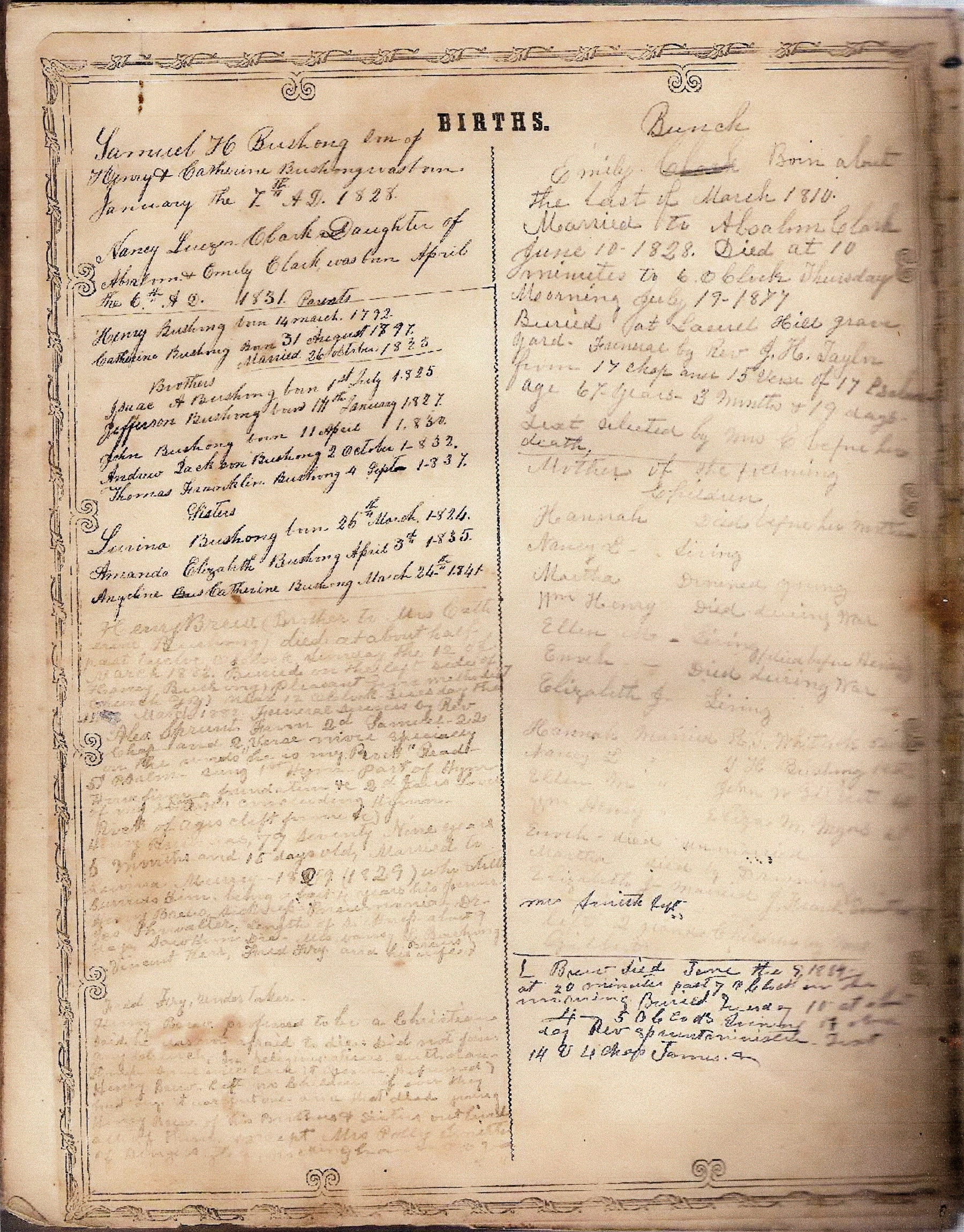 Samuel and Nancy's Bible, with details of their parents and siblings.