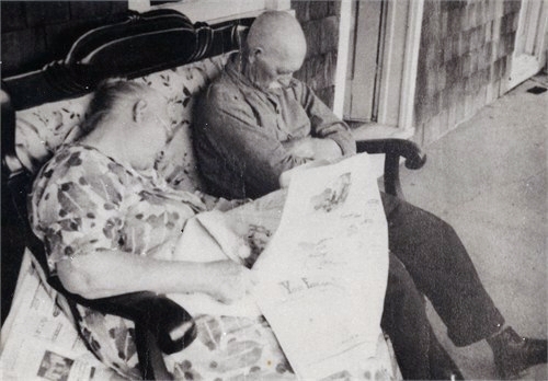 Shown, left, Anna Alberta Norris. On right, Anna and Thomas dozing.